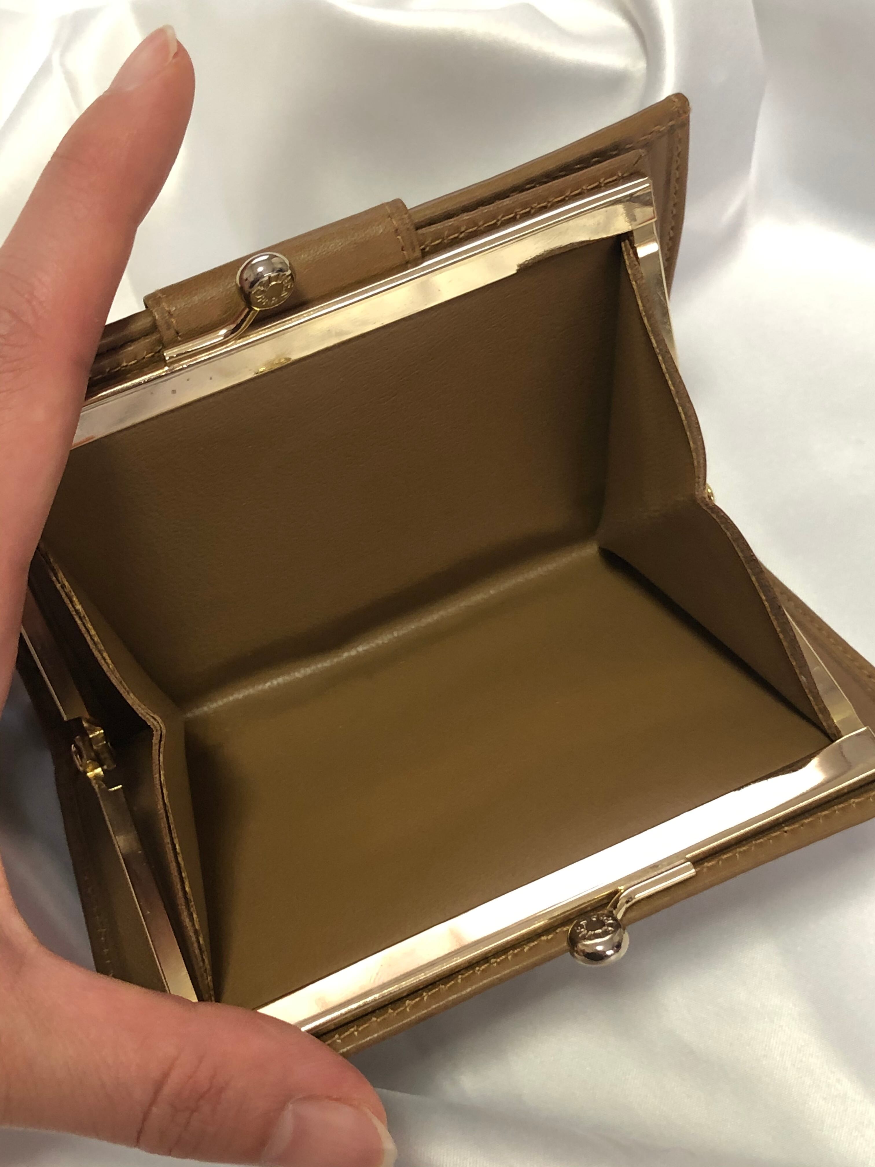 小さめのお財布でブラゾンロゴのモチーフ金具がワンポイント付いていてビンテージらしいがま口がマッチしてとても可愛いです⭐︎