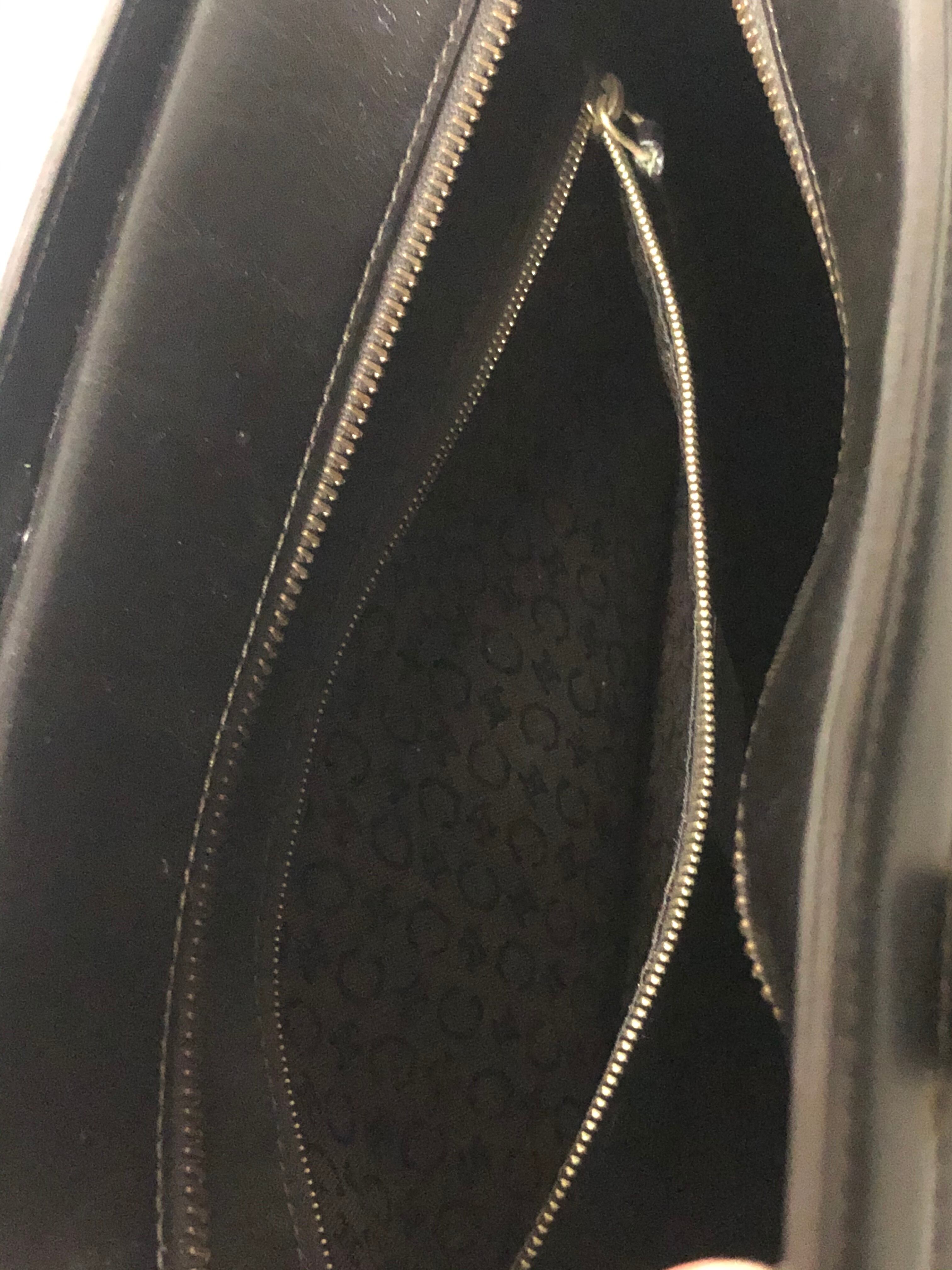ブラックに見えますが濃茶(限りなく黒に近いブラウン)のレザー生地にに大きなブラゾンロゴが型押しされていてロゴが映えるデザインです。